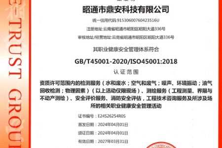 2003年11月10日,昭通市鼎安科技有限公司成立,初始主要從事第三方安全工程技術(shù)服務(wù),經(jīng)多年運(yùn)營(yíng),發(fā)展為多專業(yè)綜合科技平臺(tái),為社會(huì)提供多種專業(yè)技術(shù)服務(wù)工作。 現(xiàn)公司注冊(cè)資金為1200萬(wàn)元,公司法定代表人:毛衛(wèi)旭。公司主要業(yè)務(wù):安全評(píng)價(jià)、安全標(biāo)準(zhǔn)化評(píng)審、安全工程技術(shù)服務(wù);環(huán)境監(jiān)測(cè)、職業(yè)衛(wèi)生檢測(cè)、檢驗(yàn);法律訴訟及非訴訟服務(wù);司法鑒定、固定資產(chǎn)投資項(xiàng)目節(jié)能服務(wù);工程咨詢;工程測(cè)量測(cè)繪;安全教育培訓(xùn)等。是安全生產(chǎn)服務(wù)、安全教育培訓(xùn)機(jī)構(gòu),也是環(huán)境監(jiān)測(cè)和職業(yè)衛(wèi)生服務(wù)機(jī)構(gòu),同時(shí)也是綜合的檢測(cè)檢驗(yàn)、綜合科技平臺(tái)服務(wù)機(jī)構(gòu)。多年來為公、檢、法、司、軍、警、海關(guān)、仲裁、安監(jiān)、工礦商貿(mào)企業(yè)、社會(huì)團(tuán)體及個(gè)人提供多專業(yè)技術(shù)服務(wù)。